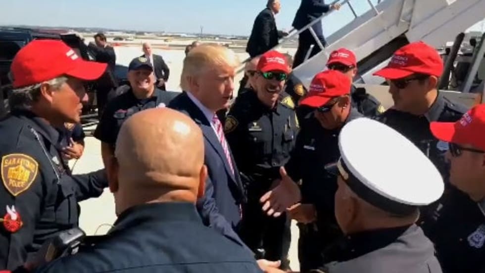 San Antonio police officers who wore Donald Trump campaign hats on the airport tarmac as the met the Republican presidential hopeful Tuesday will be disciplined, the chief said.