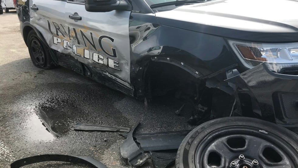 An officer with the Irving (TX) Police Department was injured when a suspected drunk driver struck her patrol vehicle as she was attending to a hit-and-run collision in the very early hours on Sunday.