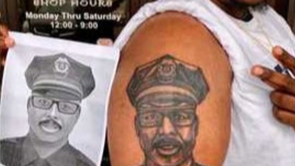 Rashad got his father's likeness tattoed on his upper arm. It shows his father in his dress uniform.