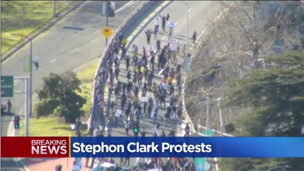 The protests are over the shooting death of Stephon Clark, 22, a suspect in a string of vehicle break-ins. Clark was killed at the end of a foot pursuit involving two Sacramento police officers. He was reportedly unarmed at the time. He was reportedly holding a cellphone and uncooperative with police commands during the nighttime shooting.