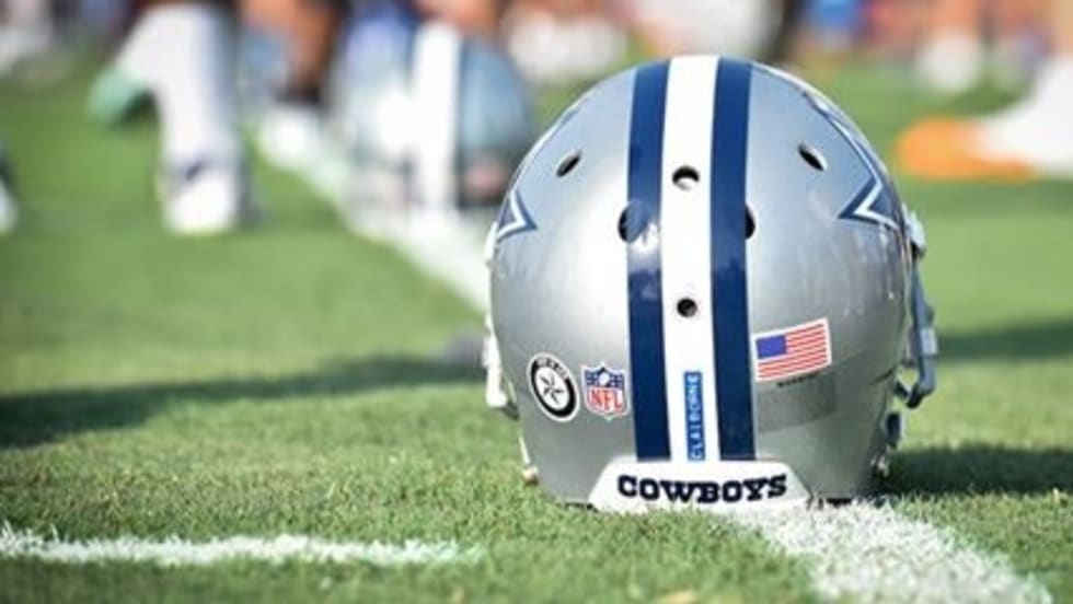 The team debuted the "Arm in Arm" helmet decals at the start of training camp in Oxnard, Calif., as a tribute to the five officers killed in a downtown Dallas shooting in July.