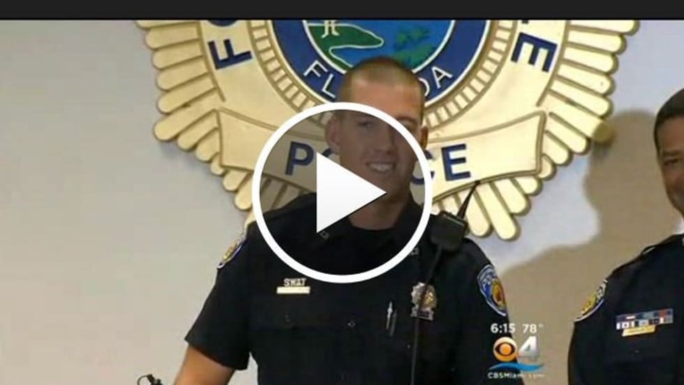 Off-duty Fort Lauderdale police officer Nick Rollins spotted the bleeding woman, who had fallen and slashed an artery in her wrist, and quickly applied a tourniquet to staunch the blood.