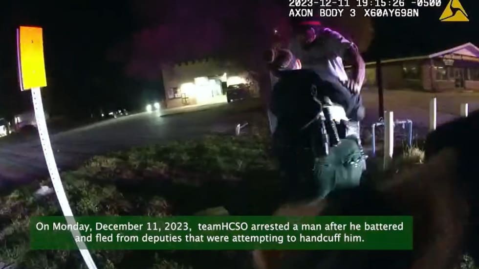 The suspect faces multiple charges, including battery on a law enforcement officer and resisting an officer with violence.