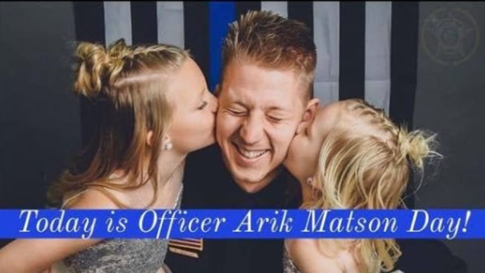 The wife of a slain Overland Park, KS, police officer said that "love was evident" as they moved her husband's body in a procession that attracted countless citizens of the community holding signs and American flags along the route.
