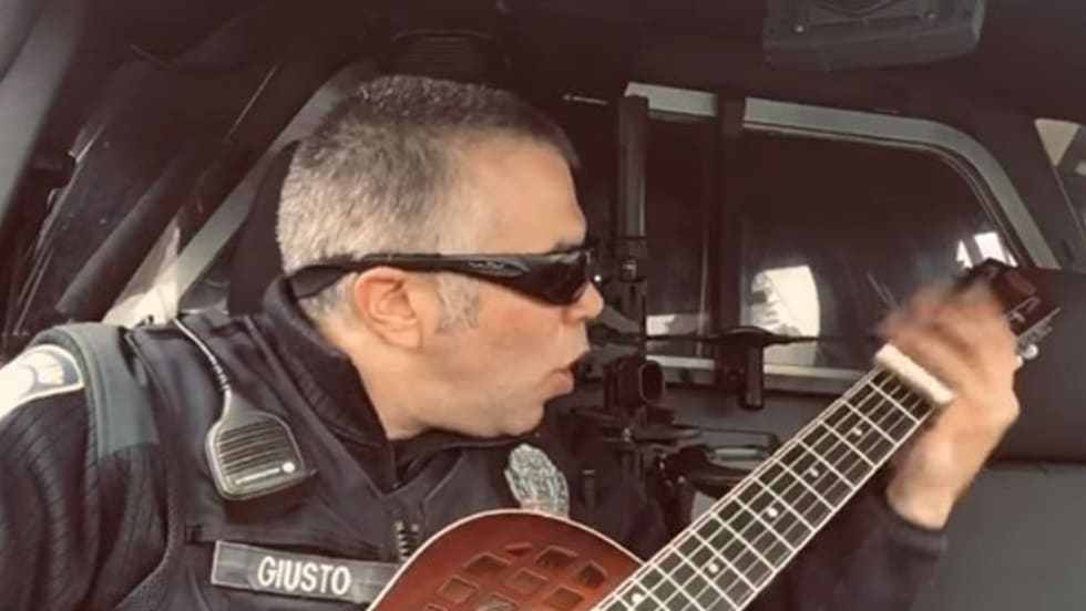 The South Portland (ME) Police Department posted a video of one of its officers singing an original song he wrote about COVID-19 while playing his guitar in the front seat of his patrol vehicle.