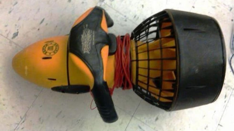 At about 8:45 p.m., the crew of an aircraft piloted by the Customs and Border Protection's Office of Air and Marine spotted two suspicious subjects in wetsuits who were carrying the self-propelled underwater devices. The males were walking north on the beach, south of Seacoast Drive.