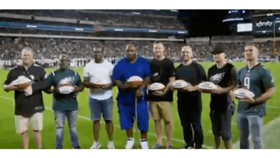 The Philadelphia Eagles football team honored law enforcement officers during a pre-game ceremony on Thursday evening by gifting them commemorative footballs and announcing their names over the stadium loudspeaker at Lincoln Financial Field.