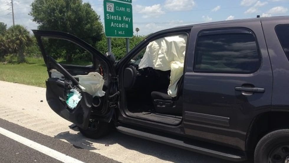 A 77-year-old man driving a Cadillac hit a Sarasota County deputy's car door while he was issuing a citation for Florida's "Move Over" law.