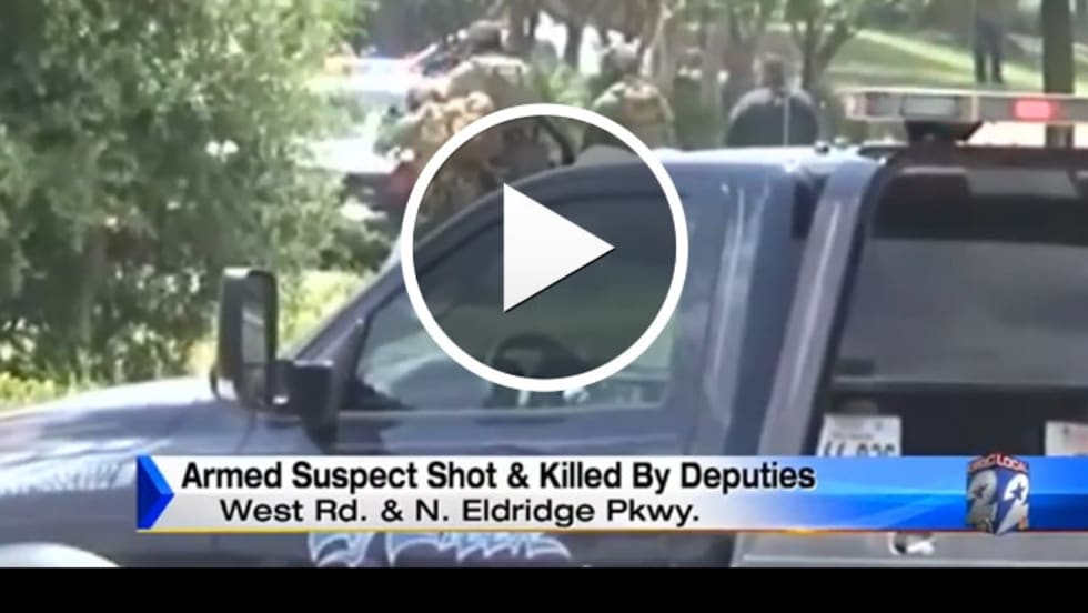 A tense, 2-hour standoff with an armed bank robber ended Sunday afternoon in northwest Harris County (Texas), when members of the Harris County Sheriff's Department high-risk operations unit opened fire, shooting that suspect multiple times.