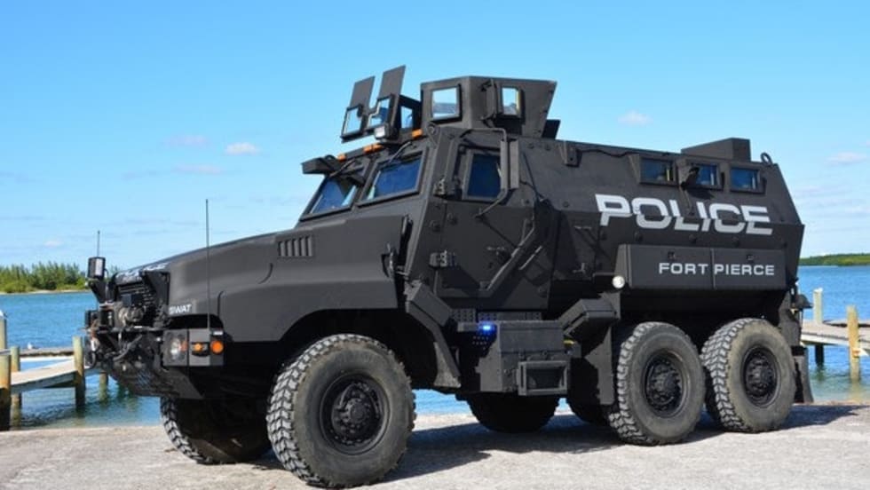 The used Mine-Resistant Ambush Protected vehicle was bought for $2,000 from the defense department's Law Enforcement Support Office. A new one would have cost $700,000, the Fort Pierce Police said.