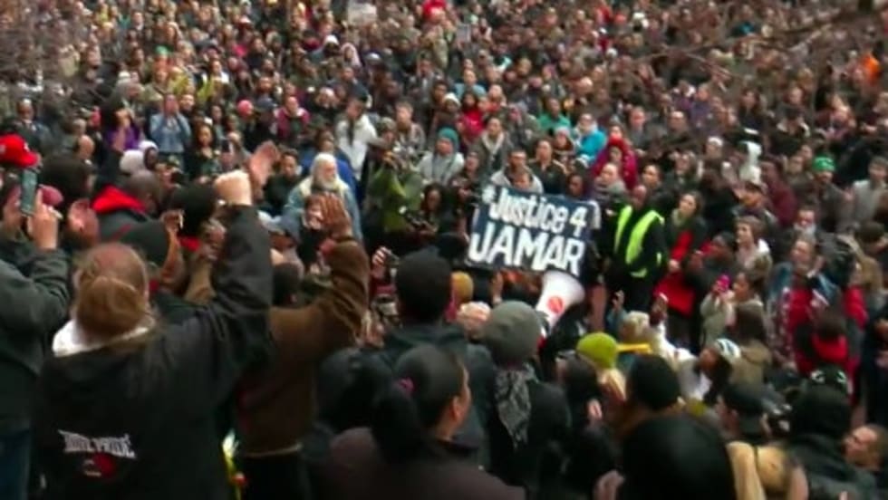 The protests were relatively peaceful compared to the siege the city experienced for 18 days after the shooting.