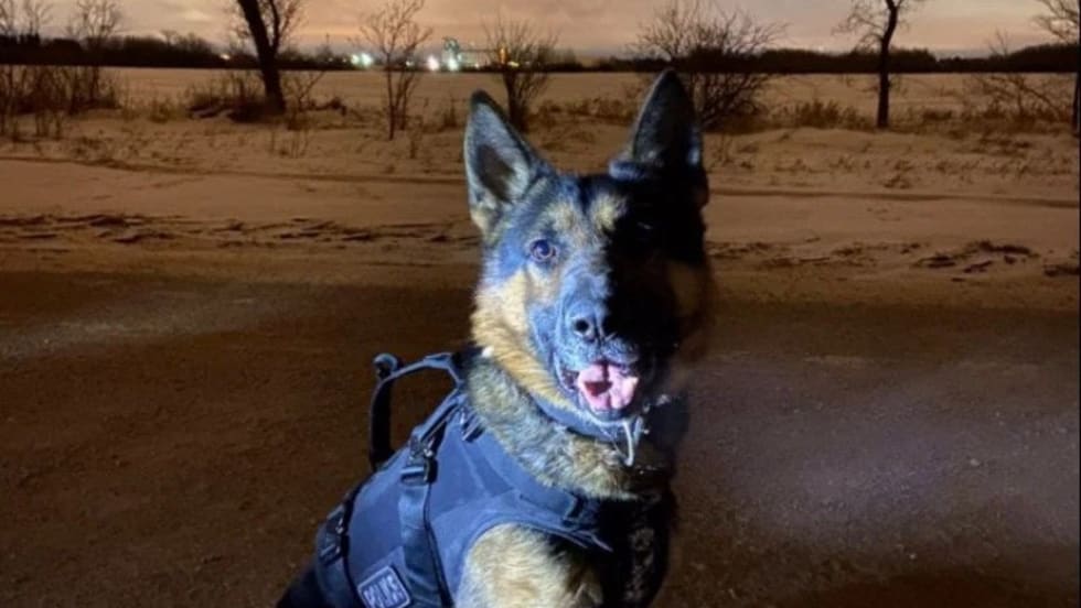 K9 Kozmo was released to help track the suspects. Officers eventually located the suspects but could not find Kozmo. The police dog was found dead after an extensive search.
