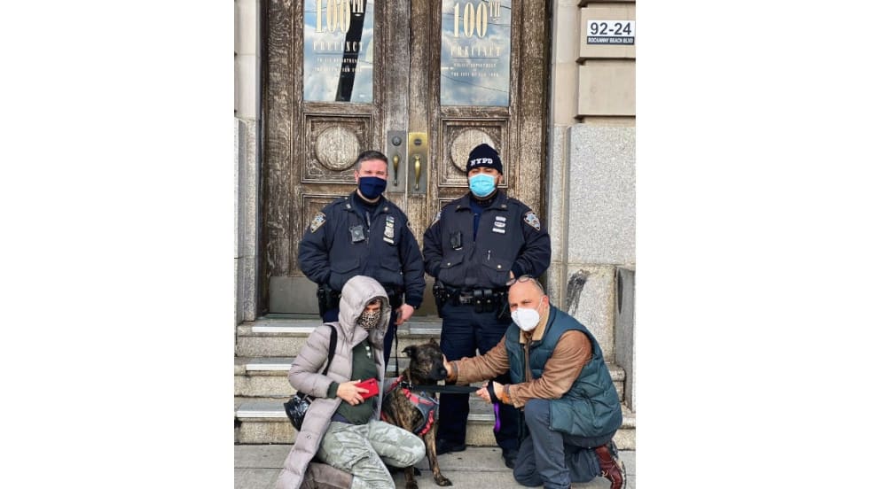 The officers were patrolling the bay when they spotted the dog. They quickly pulled him from the freezing water, wrapped him in a blanket and brought him to a local veterinarian.