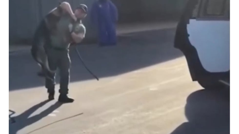 The video at the center of the investigation shows the officer placing a collar on 4-year-old K-9 Zuul, then lifting the dog off the ground using the collar. After struggling to get the dog into the back of a vehicle, the officer appears to strike the animal.