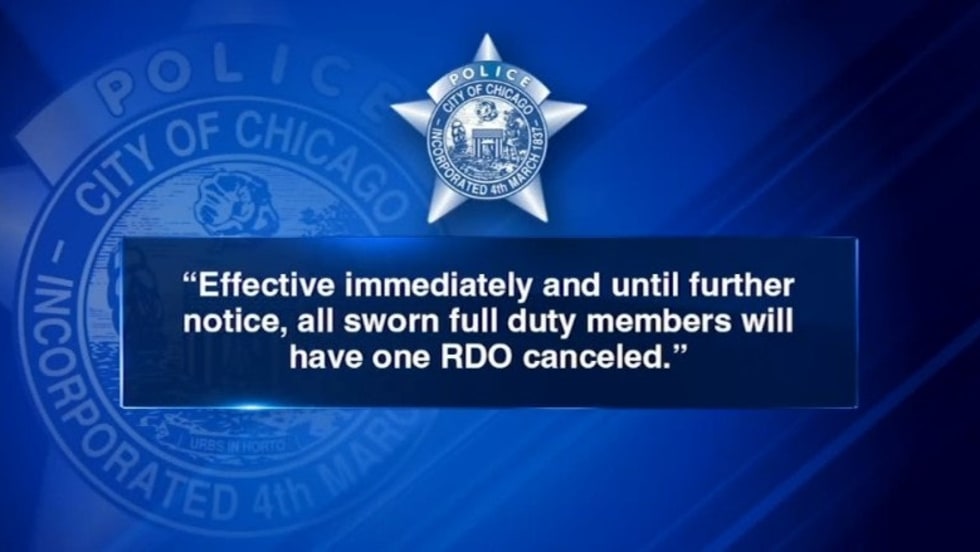 "To enhance public safety and to address current crime patterns, all full-duty sworn members will have one regular day off canceled," the Chicago Police Department said in a statement Monday.