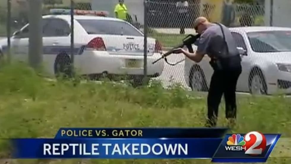 A Daytona Beach (Fla.) Police officer shot and killed an aggressive alligator in a retention pond, after children began throwing things at it and poking it with sticks.