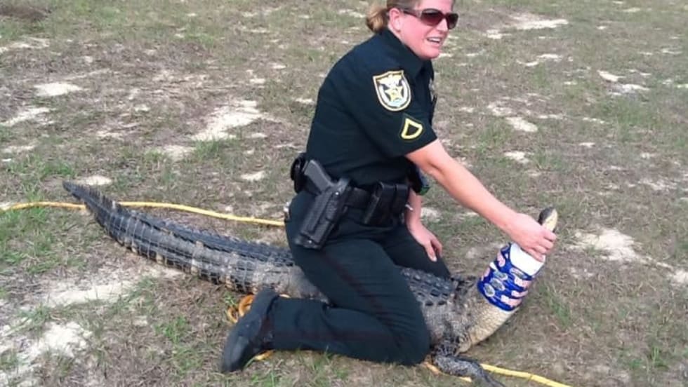 A Lake County (Fla.) Sheriff's deputy captured a seven-foot alligator that had crawled on to the grounds of the middle school where she was assigned as a school resource officer.