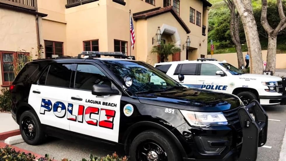 The Laguna Beach Police department recently repainted a number of squad cars to include an American flag theme across the front and rear doors. Some citizens are crying foul, saying that the new design is "aggressive" and not reflective of the community.