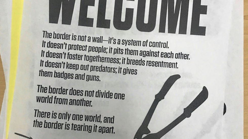 The top of the posters read "IMMIGRANTS WELCOME" – and were hung in hallways and classrooms at River Road /El Camino del Rio Elementary. But part of the poster said, "The border is not a wall…It doesn't keep out predators; it gives them badges and guns."