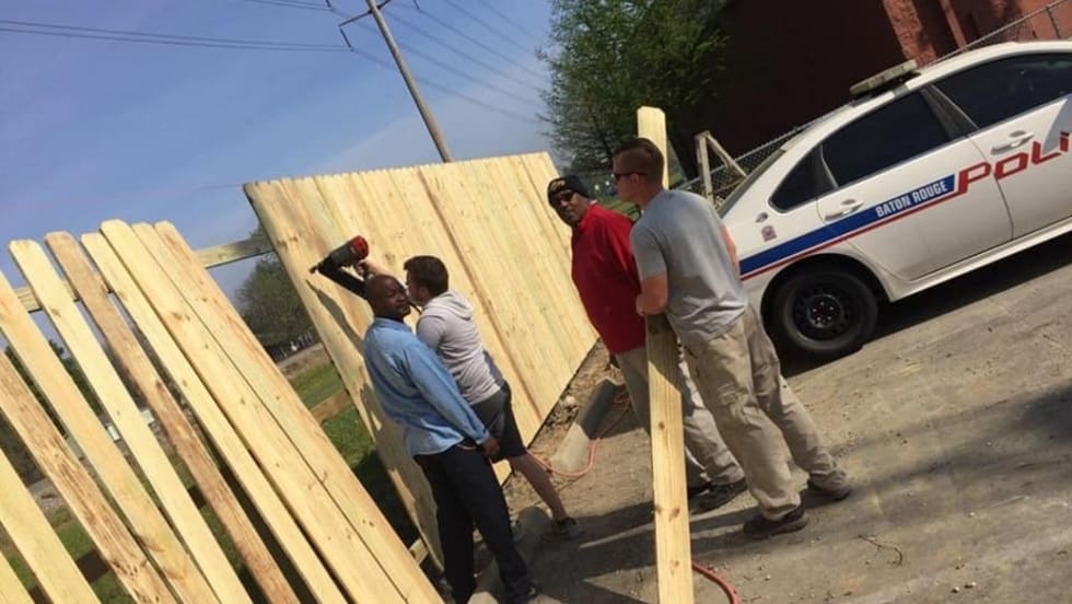 Officers with the Baton Rouge (LA) Police Department were joined by members of the community in an effort to rebuild the fence surrounding the fourth district precinct.