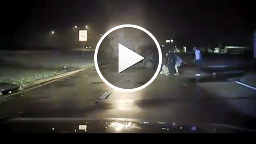 A video has been released showing Mesquite, Texas, police officers pulling a man from a burning wreck early Sunday morning, off Interstate-30.