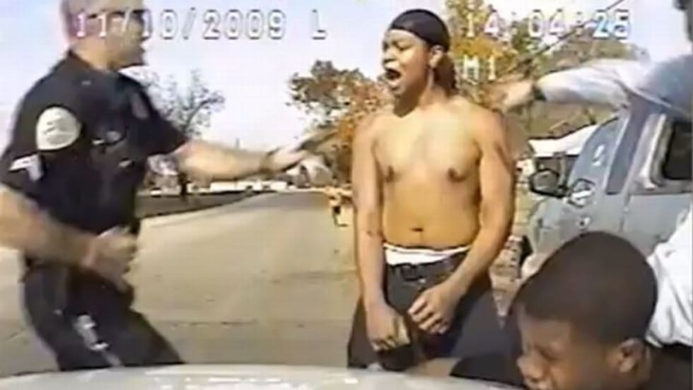 Paris (Texas) Police Chief Bob Hundley released a three-minute clip of the dashboard video of the arrest, which took place Nov. 10, 2009. In the clip, Officer Jeremy Massey is shown throwing 18-year-old Cornelius Gill onto the hood, after handcuffing him.