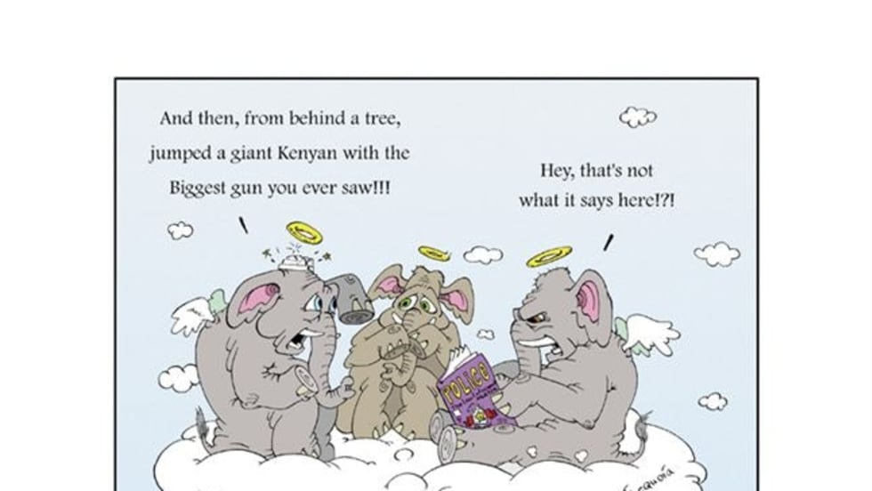 Out of the trees came a charging, trumpeting bull elephant, apparently intent on stomping not only the ball, but all the players, too.