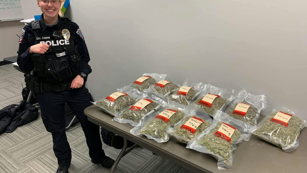 An officer with the Middle Tennessee State University Police Department is making the most of her time while most of the students have vacated campus for winter break. Officer Katelynn Adams seized 14 pounds of marijuana during a traffic stop.