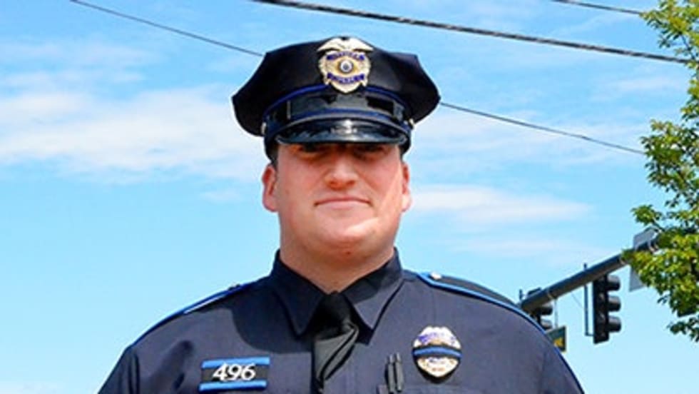 Jamestown, RI, police Officer Ryan Bourque had just gotten off the night shift and was driving home early Monday morning when his Dodge Charger was hit by another vehicle head-on.