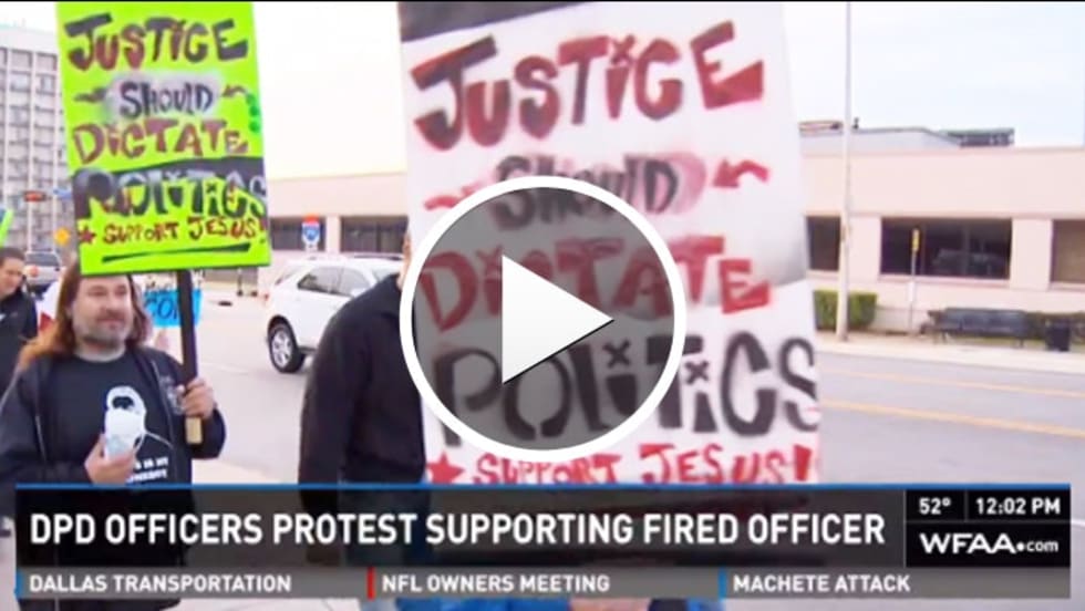 More than 100 Dallas police officers and business owners marched to City Hall Wednesday, demanding that Officer Jesus Martinez be reinstated on the force.