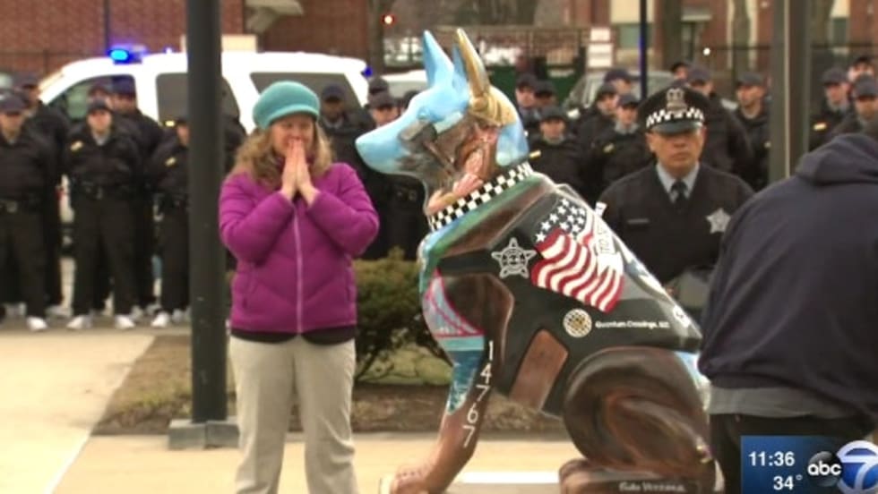 The K-9 statue is part of Chicago's K9 for Cops public arts campaign launched by the Chicago Police Memorial Foundation. Funds were raised by individual donations.