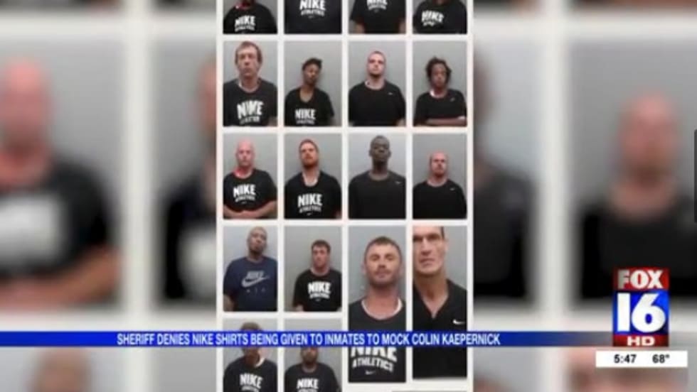 Sheriff Roberts says the shirts were given to people who came into the jail without "proper attire during the booking process." Roberts says the shirts weren't purchased by his department -- but rather, already on-hand.