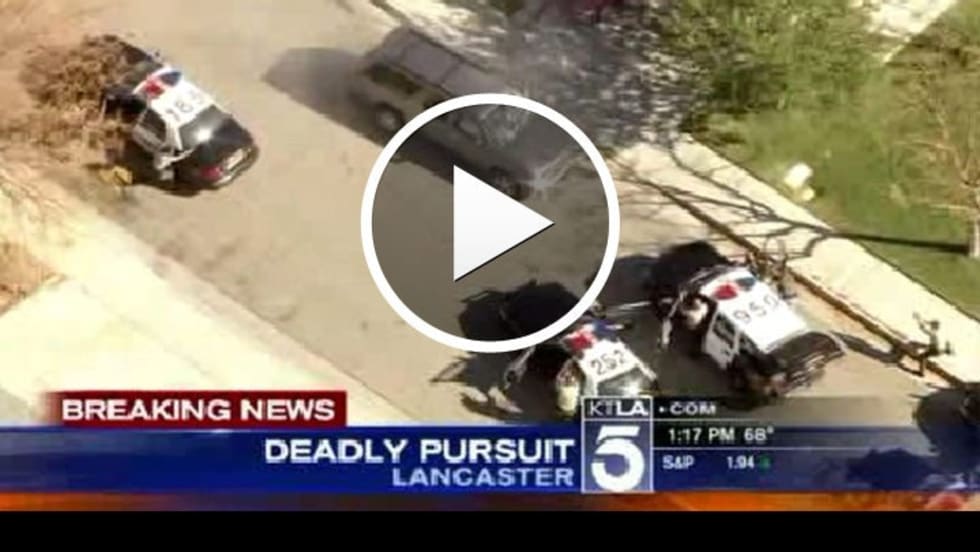 A bank robbery suspect led Los Angeles County Sheriff's deputies in a high-speed pursuit Friday that ended with a deadly shootout on a Lancaster cul-de-sac.