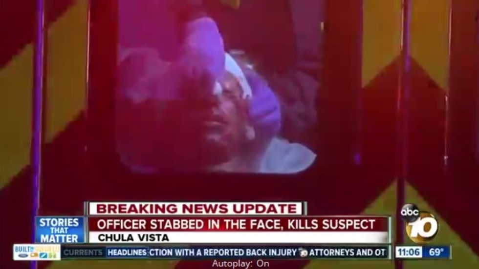 A Chula Vista, CA, police officer who was stabbed in the face several times Tuesday night fatally shot his attacker in self-defense, police say.