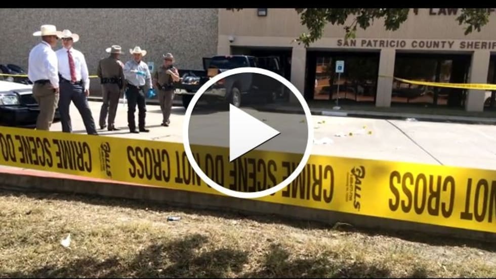 A man drove his pickup truck into the Wayne Hitt Law Enforcement Center in Sinton, Texas, then shot at the building.