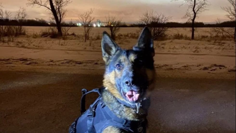 The vehicle ended up stuck in snow and one of the occupants, a male suspect, who attempted to run was found in deep snow. Officers were attempting to bring him into custody when their dog, Oliver, was stabbed repeatedly with a knife, police say.