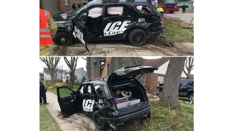 An officer with the Michigan City (IN) Police Department was injured when his patrol vehicle was struck by another motorist, causing both cars to leave the roadway on Thursday afternoon.