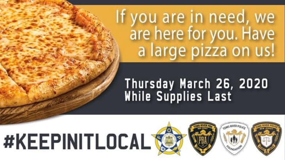 Police in Toms River, NJ, are paying for hundreds of pizzas to help local residents and businesses impacted by the coronavirus shutdown.