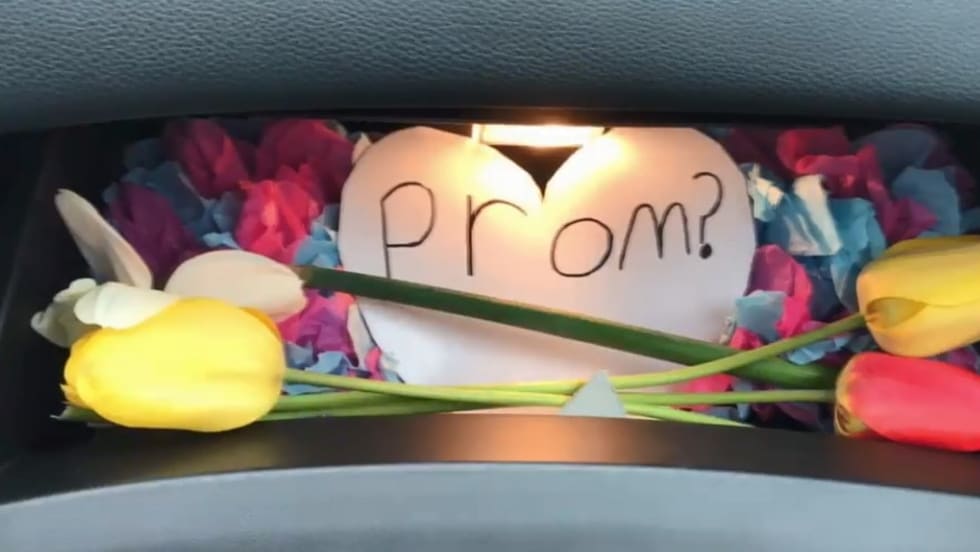 An officer with the Marshall (WI) Police Department helped a young man ask a girl to prom during a mock traffic stop.