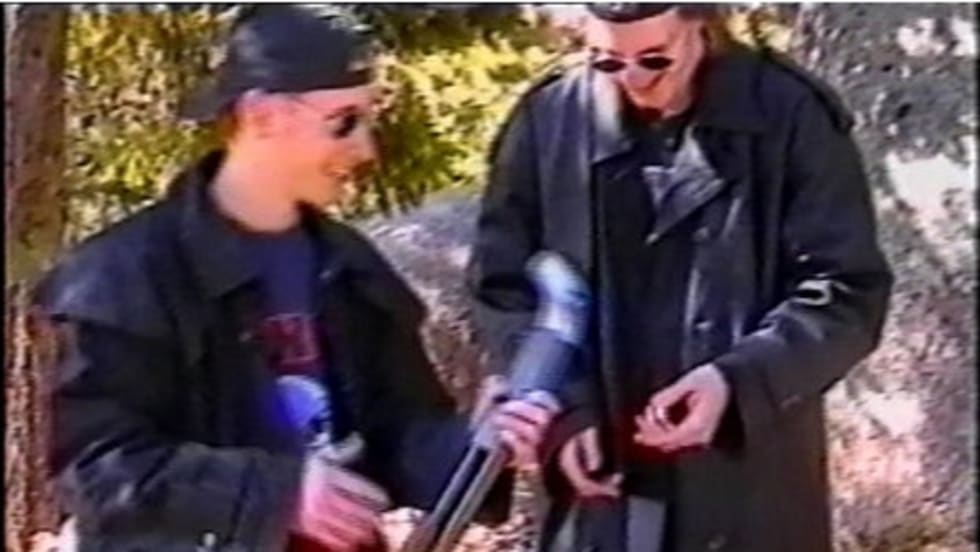 The 17-year-old junior wore a black trench coat and fired a sawed-off shotgun, the same attire and weaponry used by the two gunmen who killed a dozen students and a teacher at Columbine High School in Colorado in 1999.