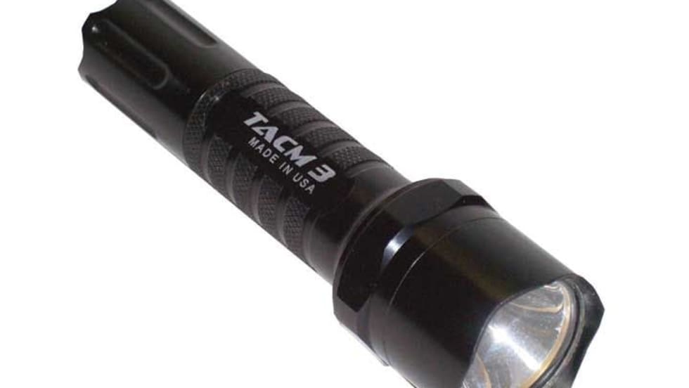 The Hellrazer flashlight from TACM 3, manufactured and assembled in America by Americans, also serves as a formidable impact weapon. An aggressively serrated front lens assembly and a guard around the recessed push button end cap switch are both capable of delivering lethal force injuries in an unexpected deadly force situation.