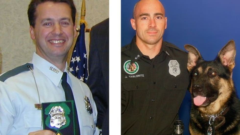 Officer Jeffrey Yaslowitz and Sgt. Tom Baitinger were providing backup to a U.S. Marshal, when they were fatally shot. The shooter was later found dead, after the house was partially dismantled using heavy machinery.