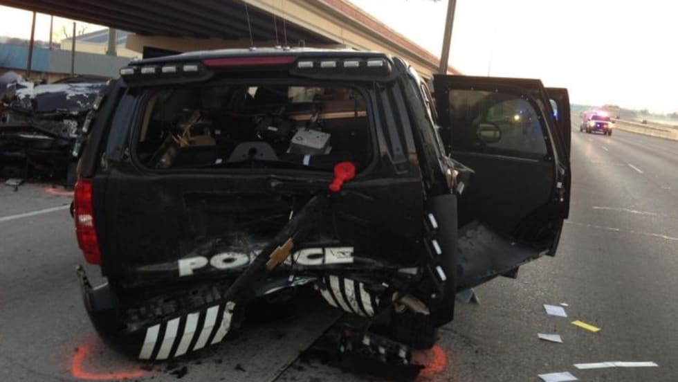 Two Carrolton (Texas) Police officers were injured when a drunk-driving suspect struck their patrol vehicle during an arrest of a suspected drunk driver early Sunday.