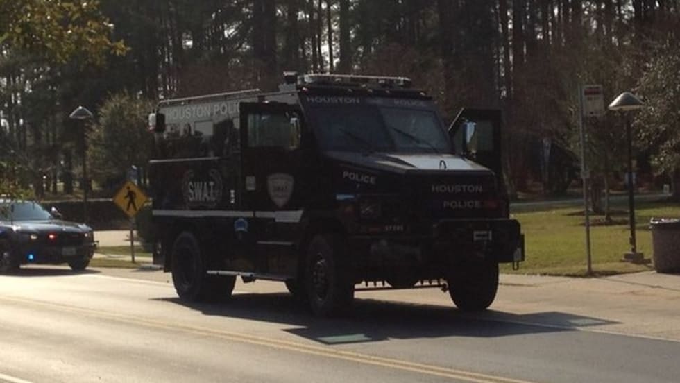 At least three people have been shot at a community college in north Harris County on Tuesday morning. One suspect has been detained, and police are searching for a second suspect.