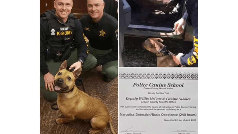 K-9 Nibbles, who was one of 31 pit bull puppies seized from a suspected dogfighting operation in Canada in 2015, is now out patrolling Craven County as a narcotics dog.