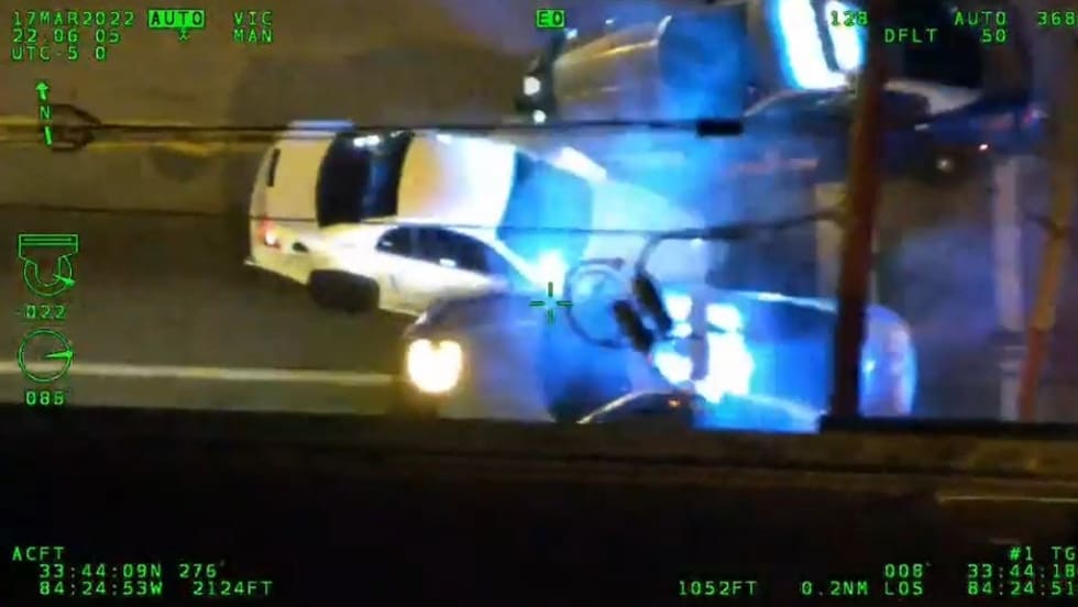 Troopers tried to stop the white Mustang, which sped away on Northside Drive. As Atlanta police followed the car via air, GSP troopers on the ground were hot on his tail.