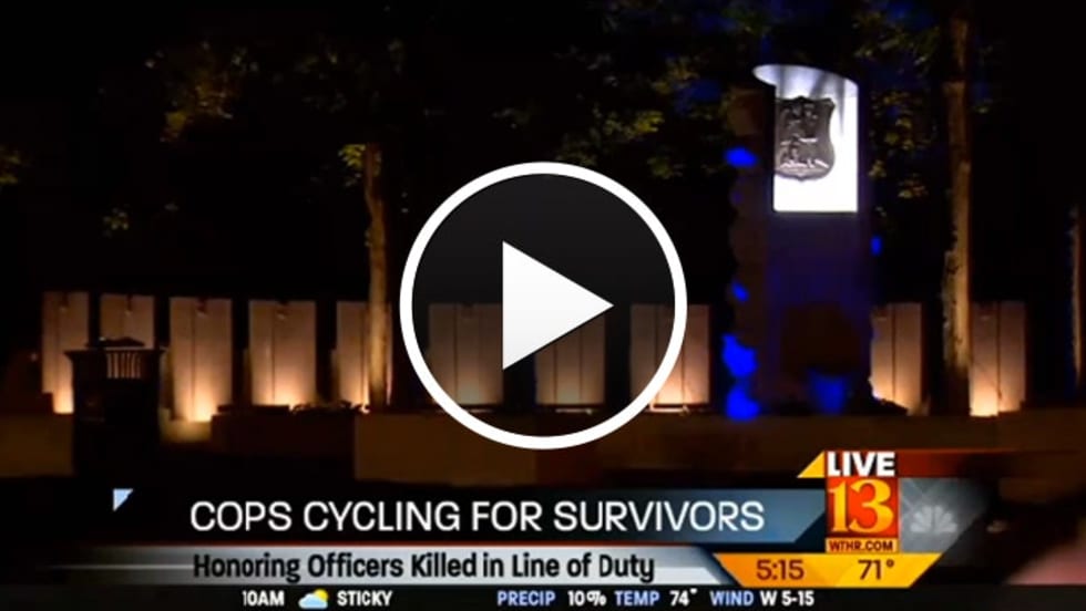 Almost 60 Indiana police officers took off on a statewide cycling event to benefit and honor officers killed in the line of duty and their families.