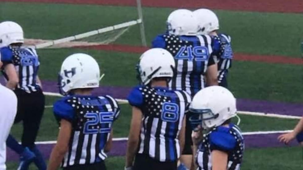 The Harrisonville (MO) Police Department is celebrating the decision made by its local little league football team to wear uniforms representing their respect for law enforcement.