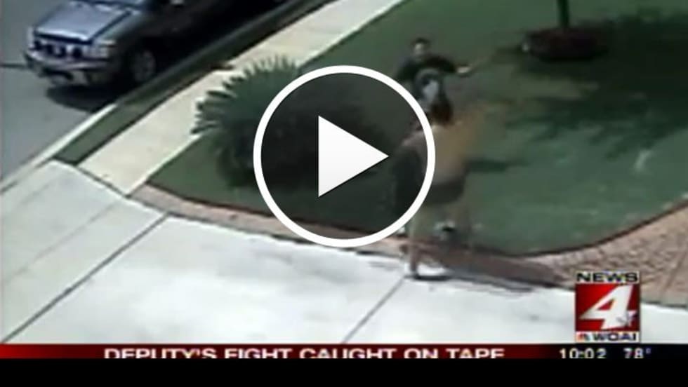 The shirtless deputy was captured on a neighbor's surveillance camera wrestling with three suspects who attempted to rob his home. The deputy used methods from his training in an attempt to detain the burglars.