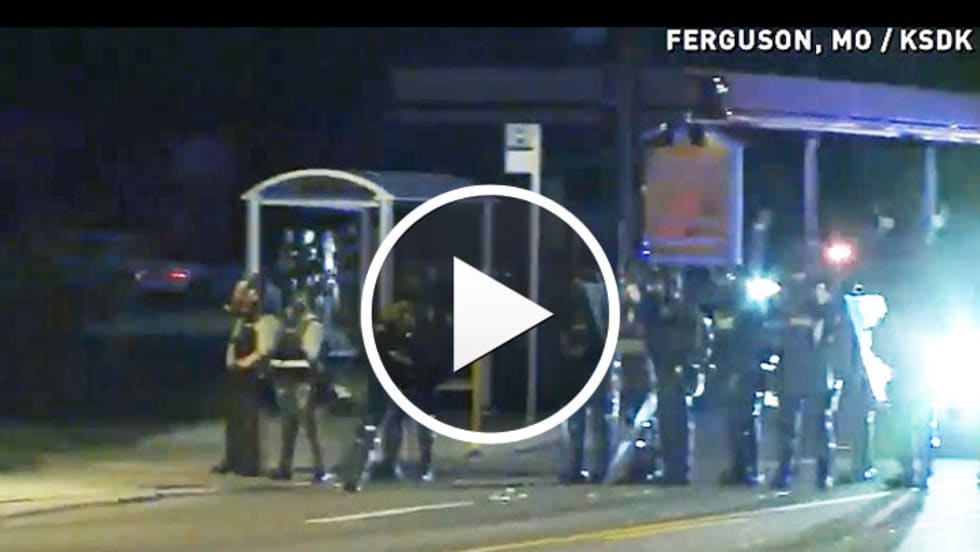 Monday night in Ferguson, Mo., near the site of an officer-involved shooting that killed a reportedly unarmed 18-year-old man, officers in riot gear lobbed tear gas at angry crowds. There were 15 arrests but no reports of looting.